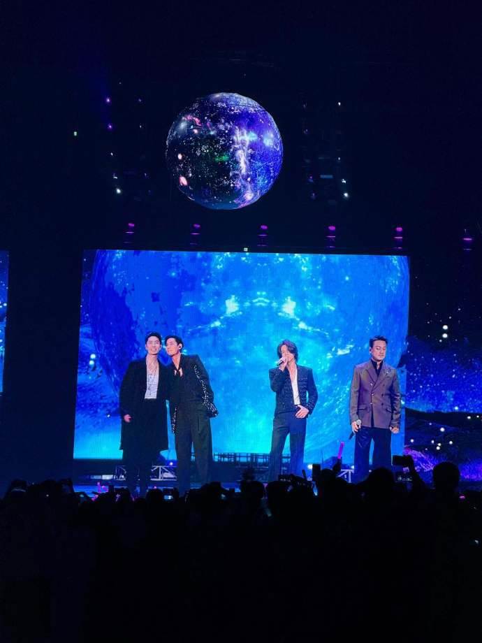 演唱會上,除了朱孝天以外,其他三人都穿著黑色西裝。