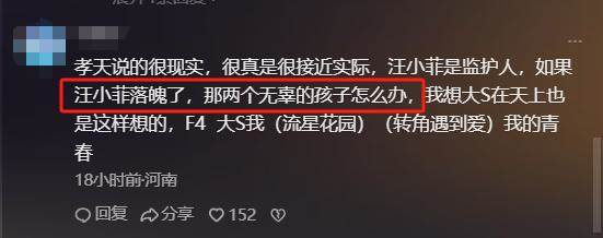 「孝天說得很現實,很真實很接近實際,汪小菲是監護人,如果汪小菲落魄了,那兩個無辜的孩子怎麼辦。」