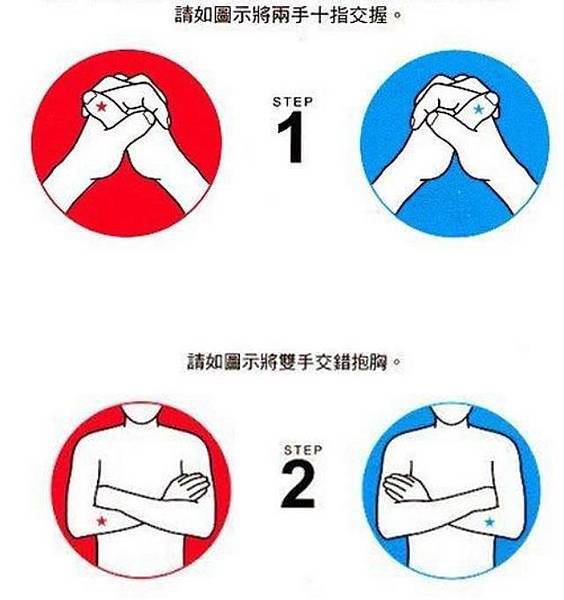 動作1、兩手直覺十指交握〈顯示一個人〝接收腦〞的慣用情形〉