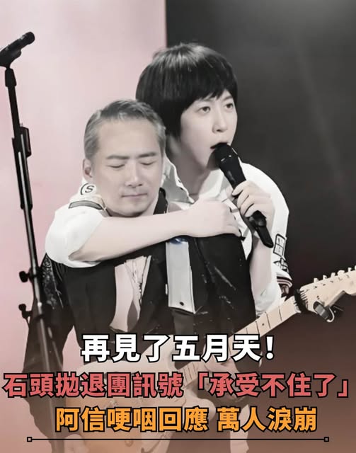 天團五月天9日于北京鳥巢舉辦第100場「回到那一天」25週年巡迴演唱會,吉他手石頭突在台上哽咽告白:「我不知道我的身體什麼時候會有承受不住的時候,如果有一天我缺席了,希望大家原諒我。」全場歌迷驚呼不已。
