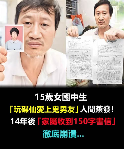 如果有一天,摯愛的親人突然消失在這個世界上,不是遭到綁架,也不是被歹徒害命,而是就這樣失蹤了,大家內心是會有多煎熬呢?日前在一個協尋網站中,一個女孩備受關注,她已經失蹤了14年,但是在各方調查下,卻始終沒有消息,唯一的證物,又是遺留在書包中的一封信,內容曝光,震驚當地人,也牽扯到詭異的碟仙事件,讓整個案件撲朔迷離,警方也一頭霧水。