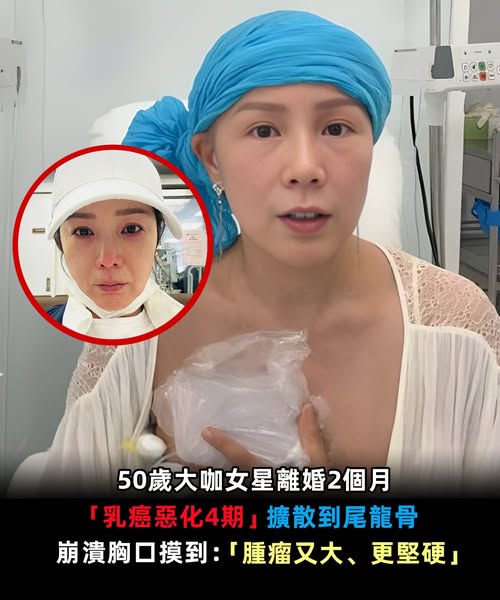 離婚2個月!50歲大咖女星「乳癌惡化4期」擴散到尾龍骨,崩潰胸口摸到:「腫瘤又大又硬」
