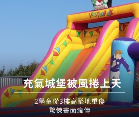 南非一所小學舉辦校慶活動,設置多座充氣城堡,讓學童與家長一起度過歡樂時光。然而當天風勢強勁,其中一座充氣城堡疑似未妥善固定,遭強風吹起,2名學童從高處墜落重傷,現場一片混亂。