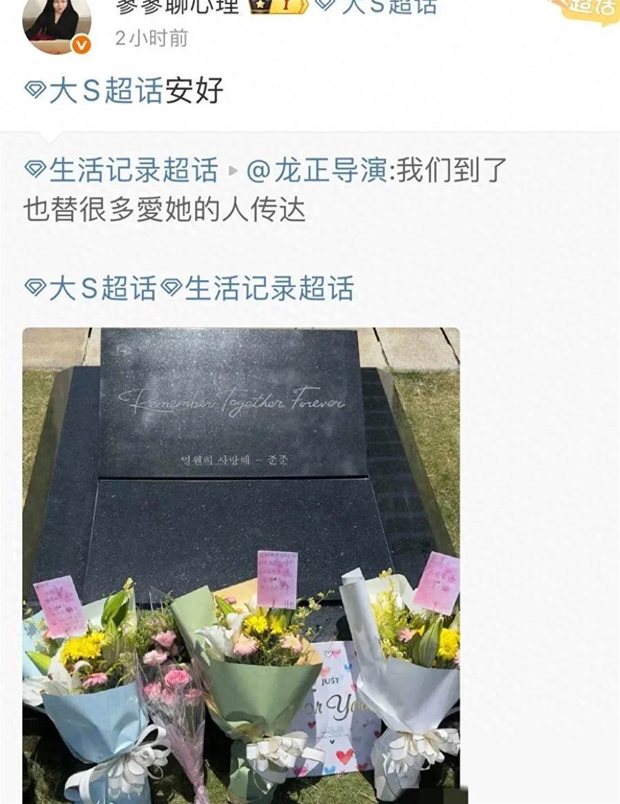墓碑看上去很干凈,旁邊擺滿了粉絲和親友送的鮮花,上面用英文和韓語寫著碑文,簡單兩句話,甚至一個漢字都沒有。大s生前御用律師,鄧高靜還轉發了該條動態。