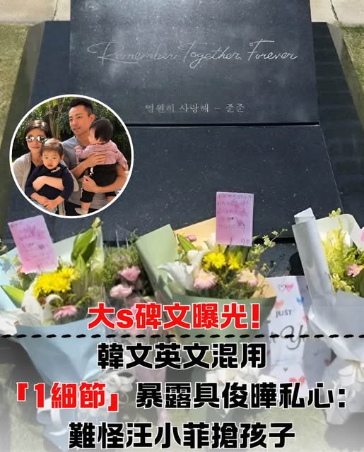 一般情況下,逝者只要有子女后代,墓碑上面都會又文字體現,而大s這個碑文確實太簡單了,只字不提兩個孩子,看來具俊燁和徐家是真的沒有把孩子們放在心上了,連這點「體面」都不愿意給。