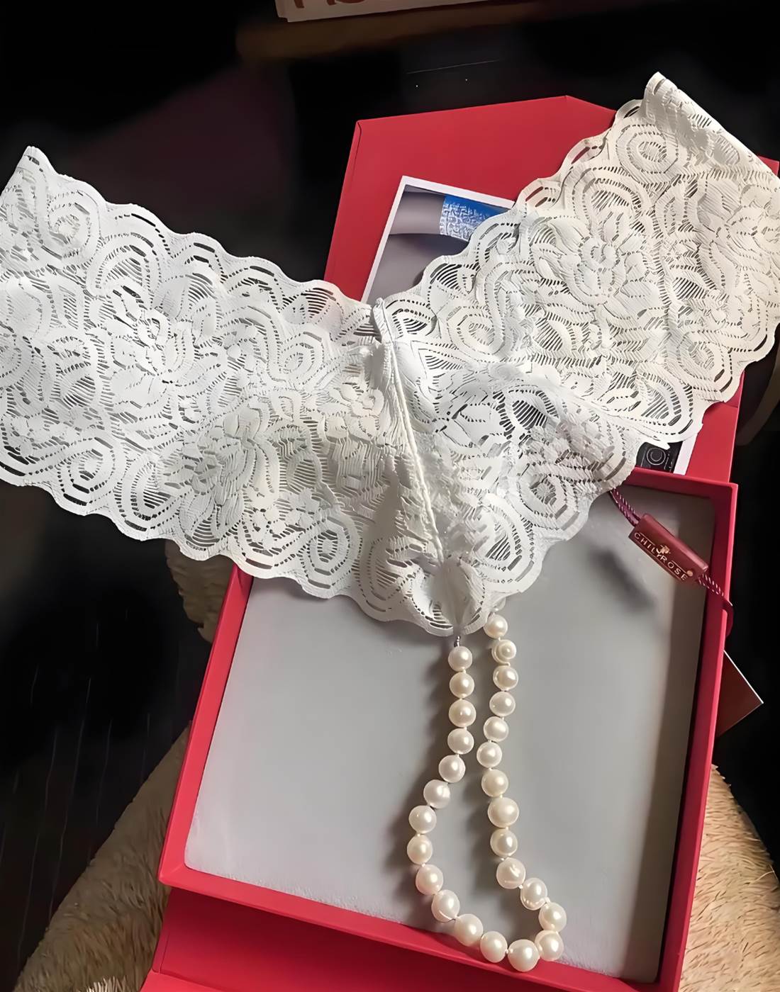 晚上十點,哄睡孩子后,林小姐終于按捺不住好奇心。她用微微發抖的手指輕輕解開緞帶,掀開盒蓋的瞬間,一抹柔和的珠光映入眼簾——那是一條設計獨特的項鏈:細膩的法國蕾絲纏繞著瑩潤的南洋珍珠,在燈光下泛著溫柔的光澤。