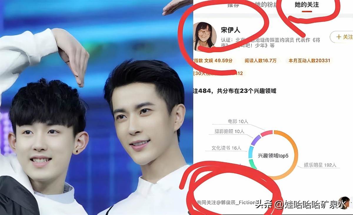 而宋伊人被一些人說成是「牽線人」,關注誰誰就「危險」,甚至有人發現她關注了郭俊辰——而郭俊辰和于朦朧路線風格又有些相似。