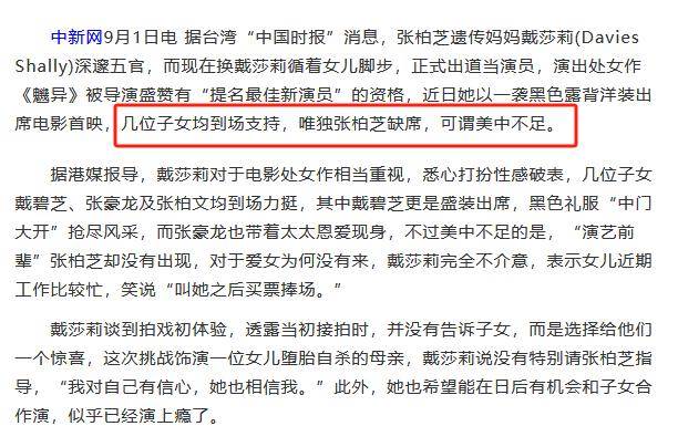 總之不管是在劇組還是電影首映的時候,張小姐作為戴女士的女兒都沒有出席。
