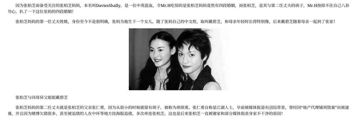 在有張小姐之前,戴女士就已經經歷了一段失敗婚姻,并給張小姐生下了一個同母異父的姐姐。