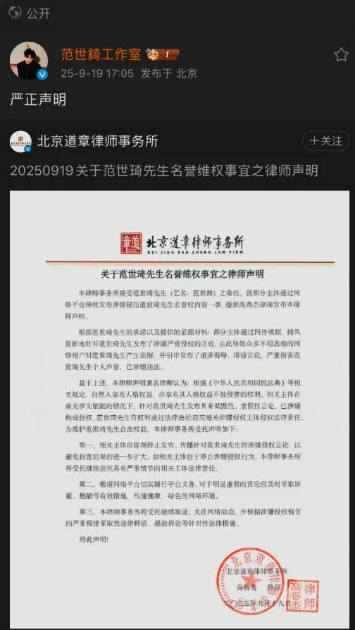 的確,因為吳簽、李某峰等人,律師函在娛樂圈已經沒了公信力。此前被質疑的程青松和高泰宇等人都選擇了報警,如果范世琦想自證清白,最好的方式確實是報警。