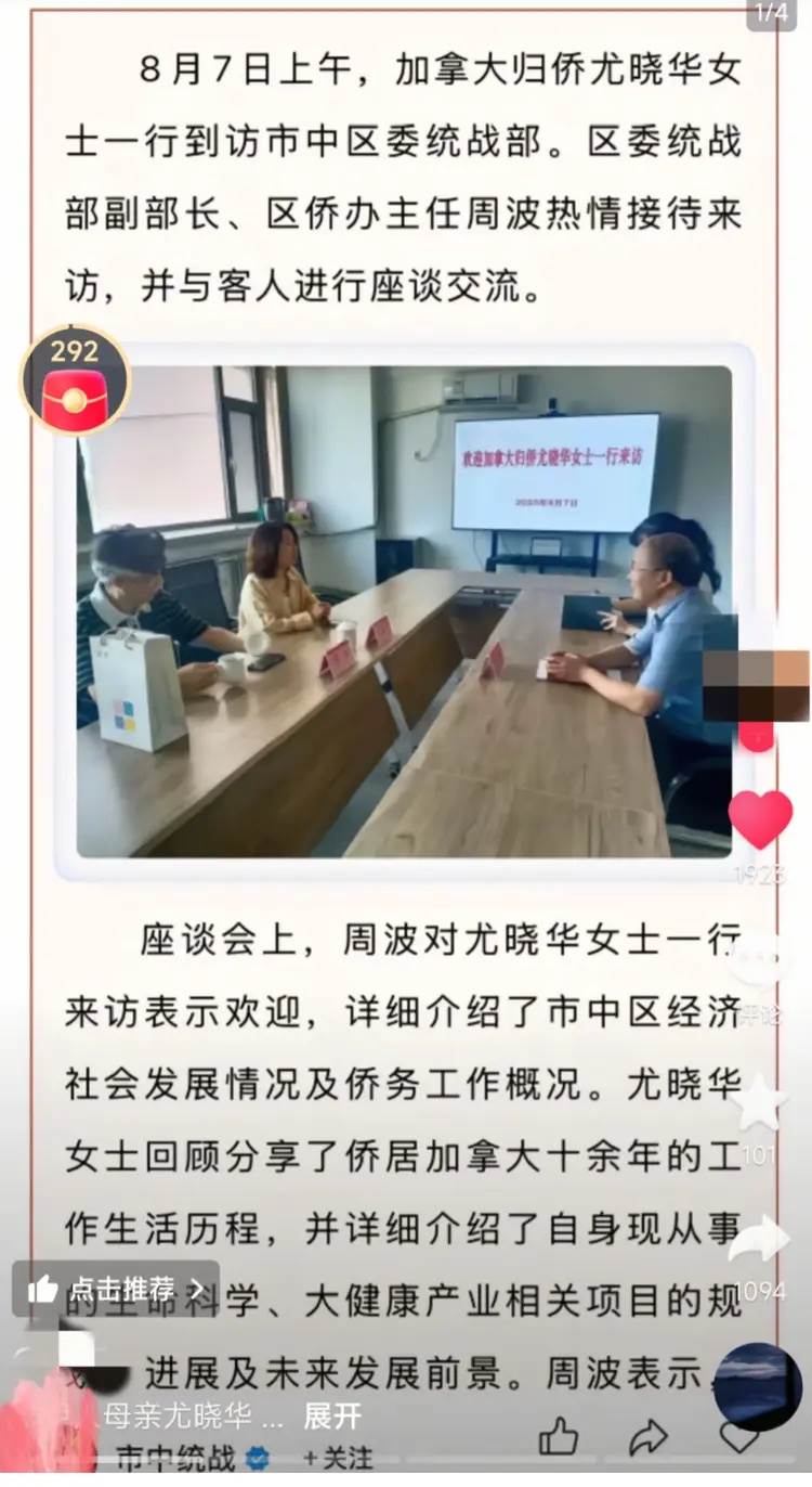 此外,尤曉華還曾作為加拿大歸僑被當地熱情接待,她談到了自己從事的生命科學、大健康產業相關項目的規劃……