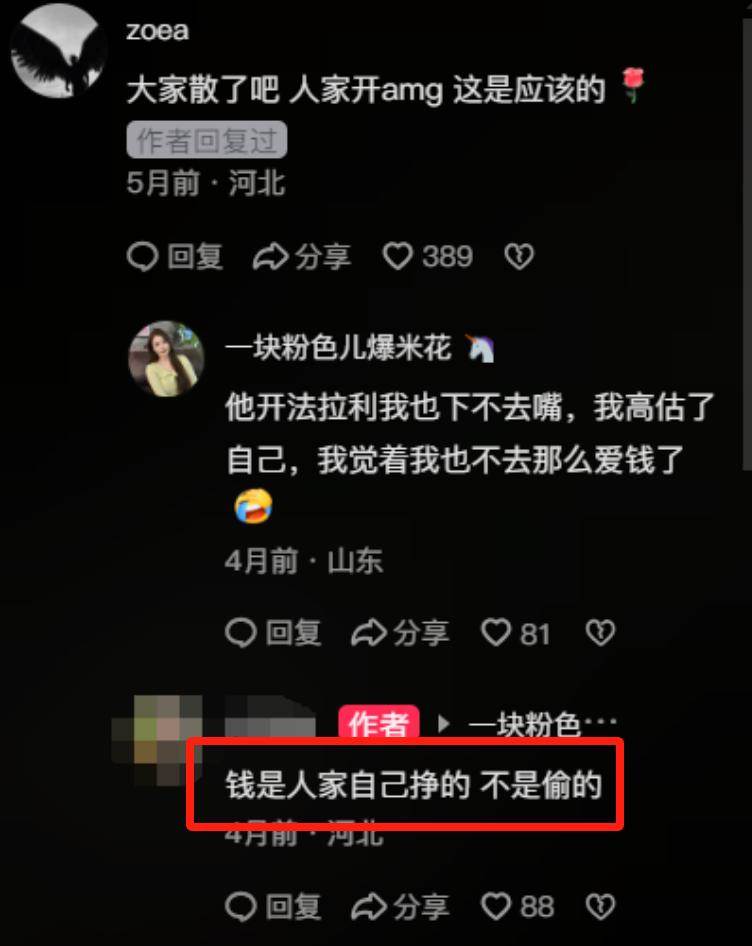 網友在女生的影片中發現男生開的也是豪車,有網友調侃說哪怕男生開法拉利,自己也不會跟他在一起。