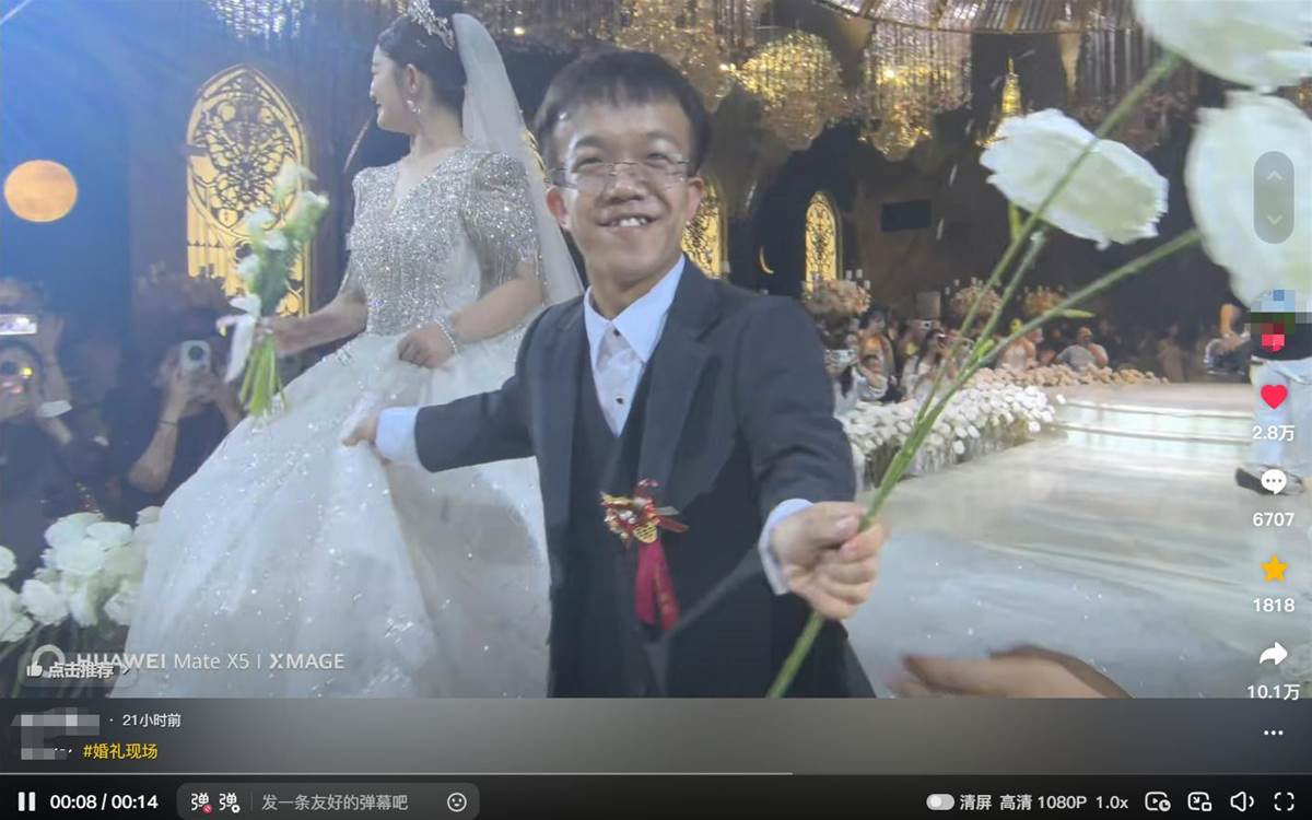 有網友找出了他們的賬號,發現新郎「多財多億」,身高或許是他為數不多的缺點了。