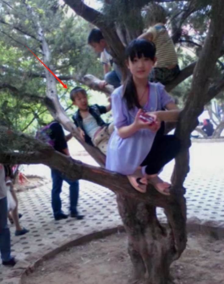 去年9月份男生曬出了一張舊照片,一個明媚的小女孩蹲在樹枝上,幾個小男孩在她身後玩耍。