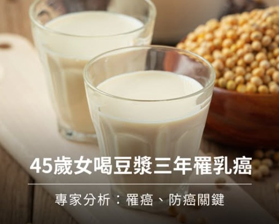 曾有新聞報導指出一位45歲女子買了豆漿機,天天喝豆漿連續3年後,發現罹患乳癌,檢查出她體內的雌激素是常人的數倍,「喝豆漿會罹乳癌」此說法也常見於網路,台灣營養基金會執行長吳映蓉表示,豆漿中的大豆異黃酮,是一種「類雌激素」,有著與雌激素類似的作用,可以削弱人體內真正雌激素的功能,進而減低雌激素刺激乳房細胞、預防癌變。喝豆漿防癌還罹癌?關鍵在控制量