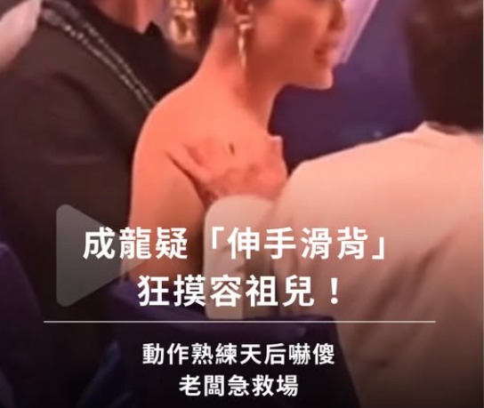 大灣區電影音樂晚會近日在澳門登場,成龍、容祖兒、王力宏等重量級巨星,以及英皇集團老闆楊受成皆出席。當晚成龍與容祖兒合唱經典曲《明明白白我的心》及《在我生命中的每一天》掀高潮,卻也因一段影片在網上引發爭議。LINE_ALBUM_工作用圖片_251002_1微博上流出一段影片,可見到成龍在台下與容祖兒同桌聊天,身穿大露背晚禮服的容祖兒格外吸睛,但成龍原本搭在椅背的手,疑似滑落至她的美背,還掃到肩膀位置,讓容祖兒似乎瞬間身體僵硬,身為老闆的楊受成見狀後起身,將她拉到另一位置,舉動被讚「即時救援,是個好老闆」。collage影片曝光後立刻在網路引發爭議,許多網友批成龍是「性騷擾」、「龍爪手」、「死性難改」,甚至有人怒斥「連天后都還是會遇到這種破事」、「動作太熟練」、「他的地位卻不懂得尊重女性,太失望了」。