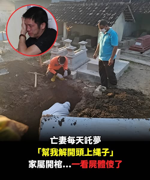 家屬溝通後,決定挖開墳墓一探究竟,發現天天入夢的太太講的全是真的,才趕緊將繩子移除。