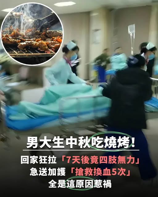 中秋將至,不少民眾也開始烤肉、吃月餅,分享節慶氛圍。但燒烤雖然好吃,但同時也隱藏不小的危險,嚴重者可能造成極大危害。中國一名大學生王姓男子,與同學一同燒烤作樂,但事後卻發生腹瀉、發燒的癥狀,且病情經過治療反而又有惡化態勢,只能就醫治療。直到檢查報告出爐,才發現這並不是一般的拉肚子,而是染上「格林-巴利癥候群(Guillain-Barré syndrome,GBS)」。
