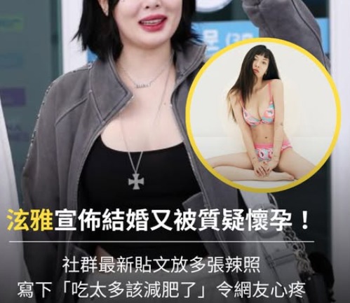不過這也並非泫雅首次被懷疑有孕,去年結婚前3個月,就爆出兩人是奉子成婚,今年7月時候,還因為在IG分享嬰兒鞋甜點的照片,也再度好奇是否懷孕,而近日泫雅出現機場時候,因圓潤身材再度被懷疑,經紀公司AT AREA也發聲:「懷孕不是事實。」