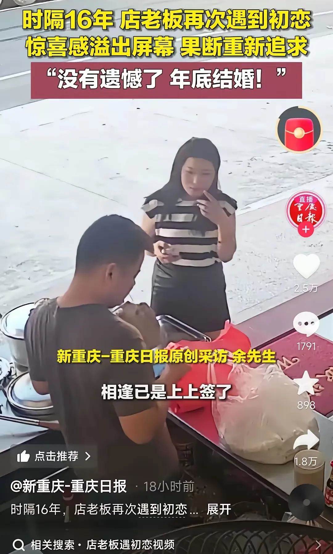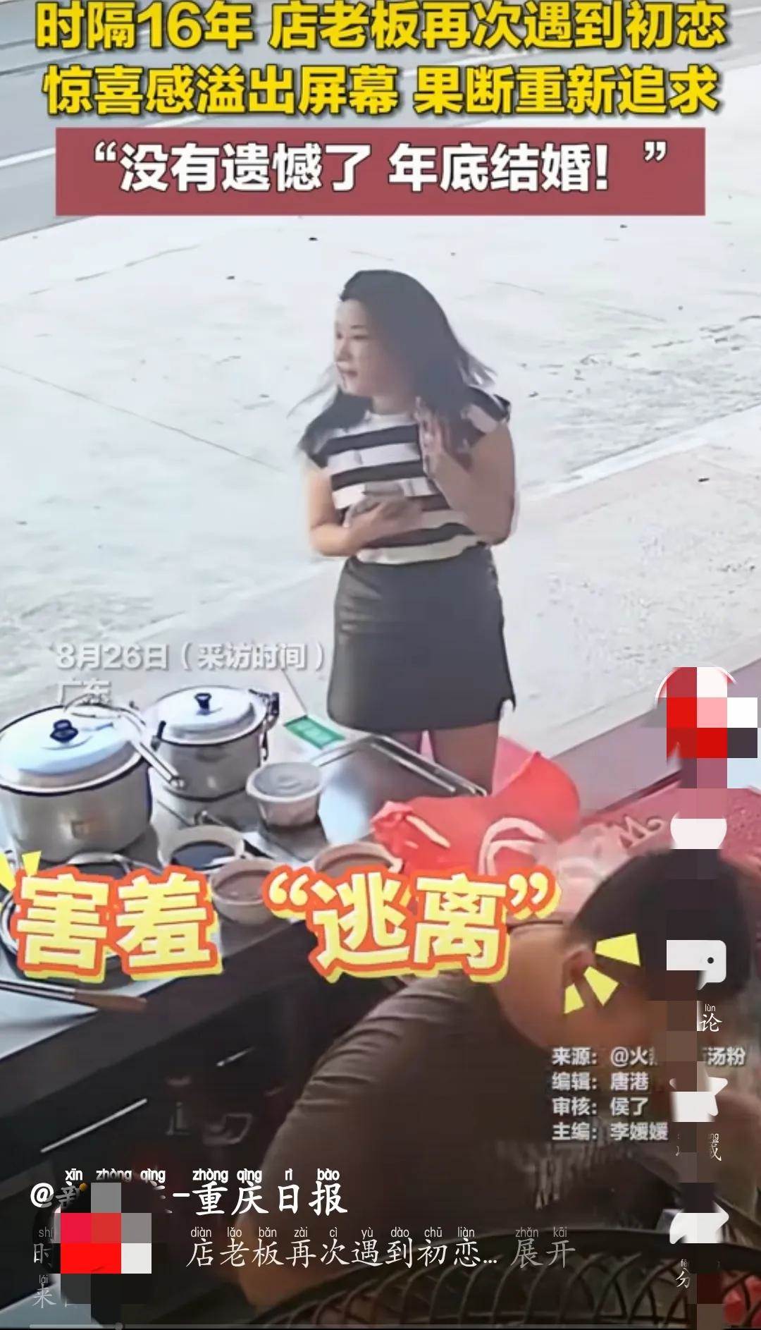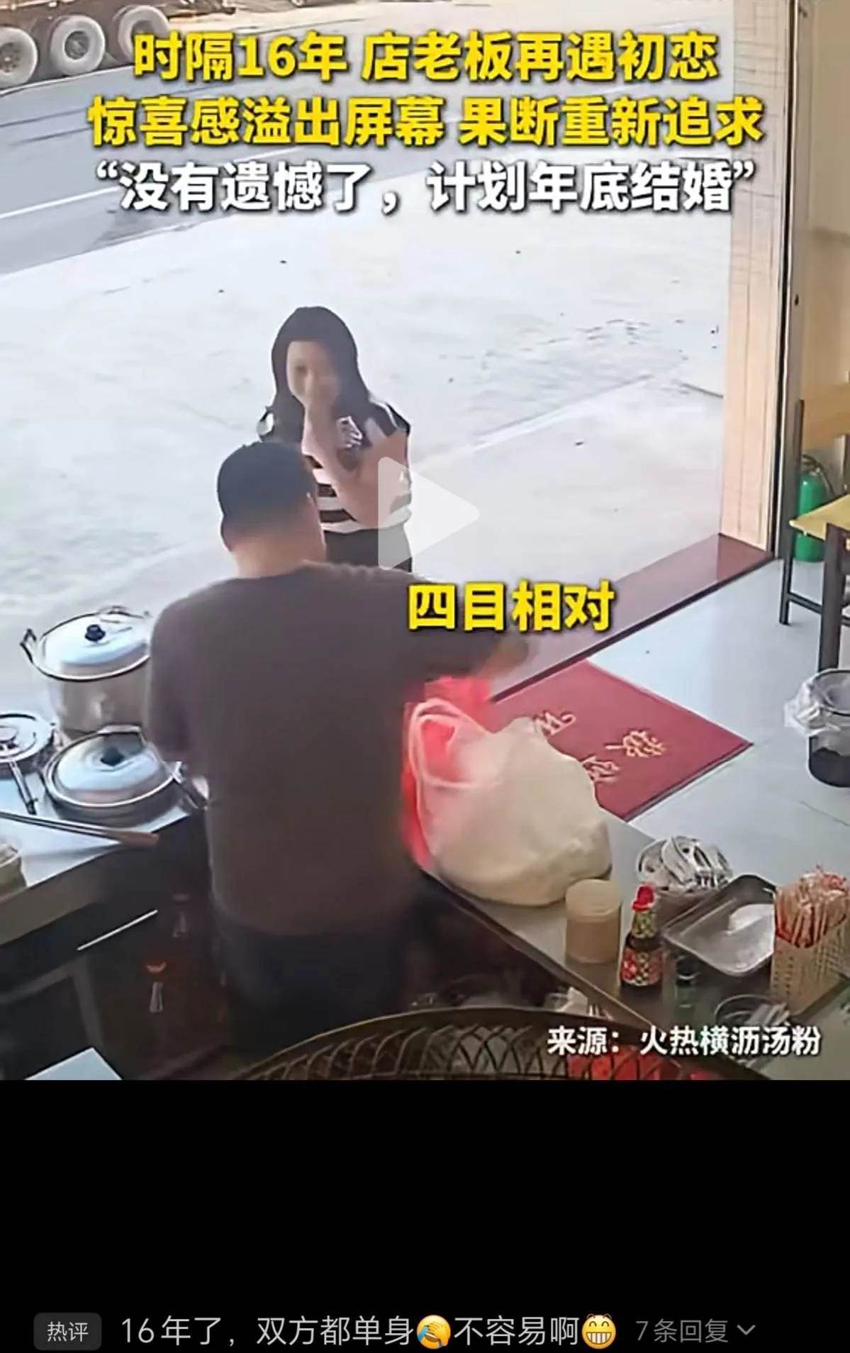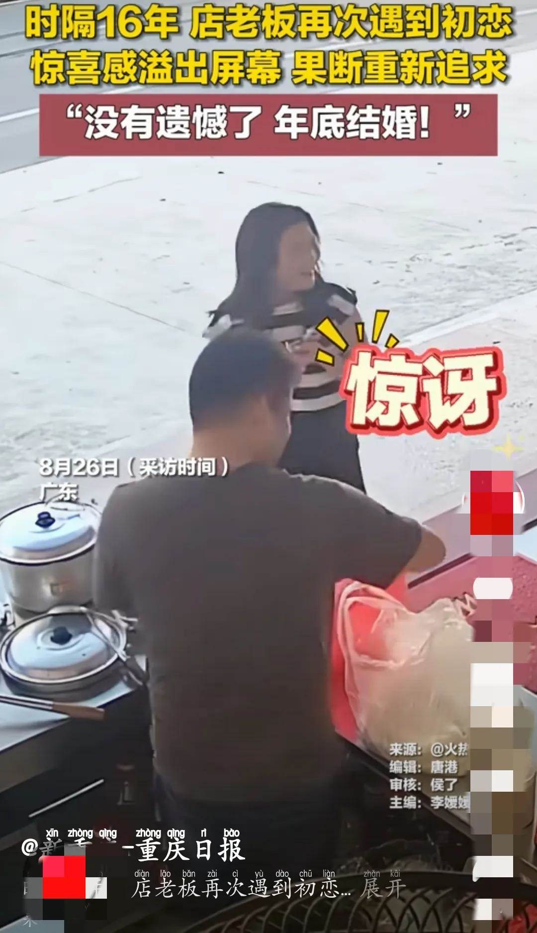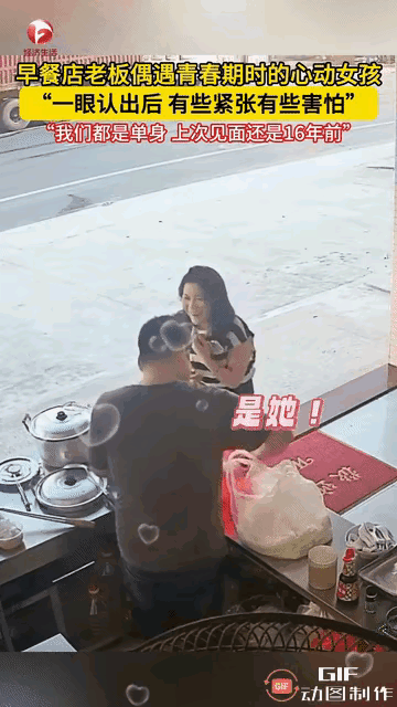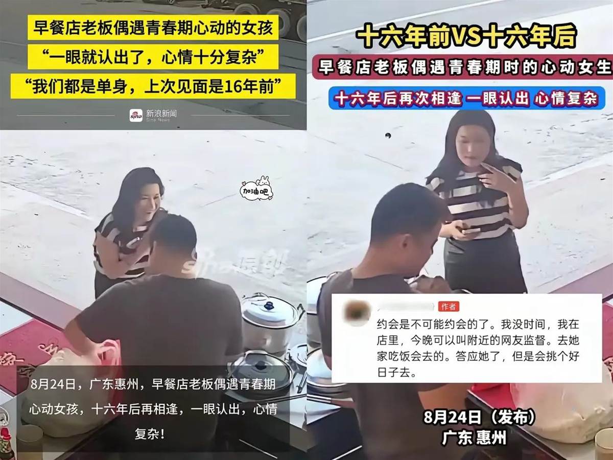 這事兒聽著跟偶像劇似的,但真真切切就發生在廣東惠州一家早餐店里。那天女孩本來是來買腸粉的,沒想到卻碰上了16年前的初戀。現場視訊里能看到,兩人一見面,很快就互加了微信。
