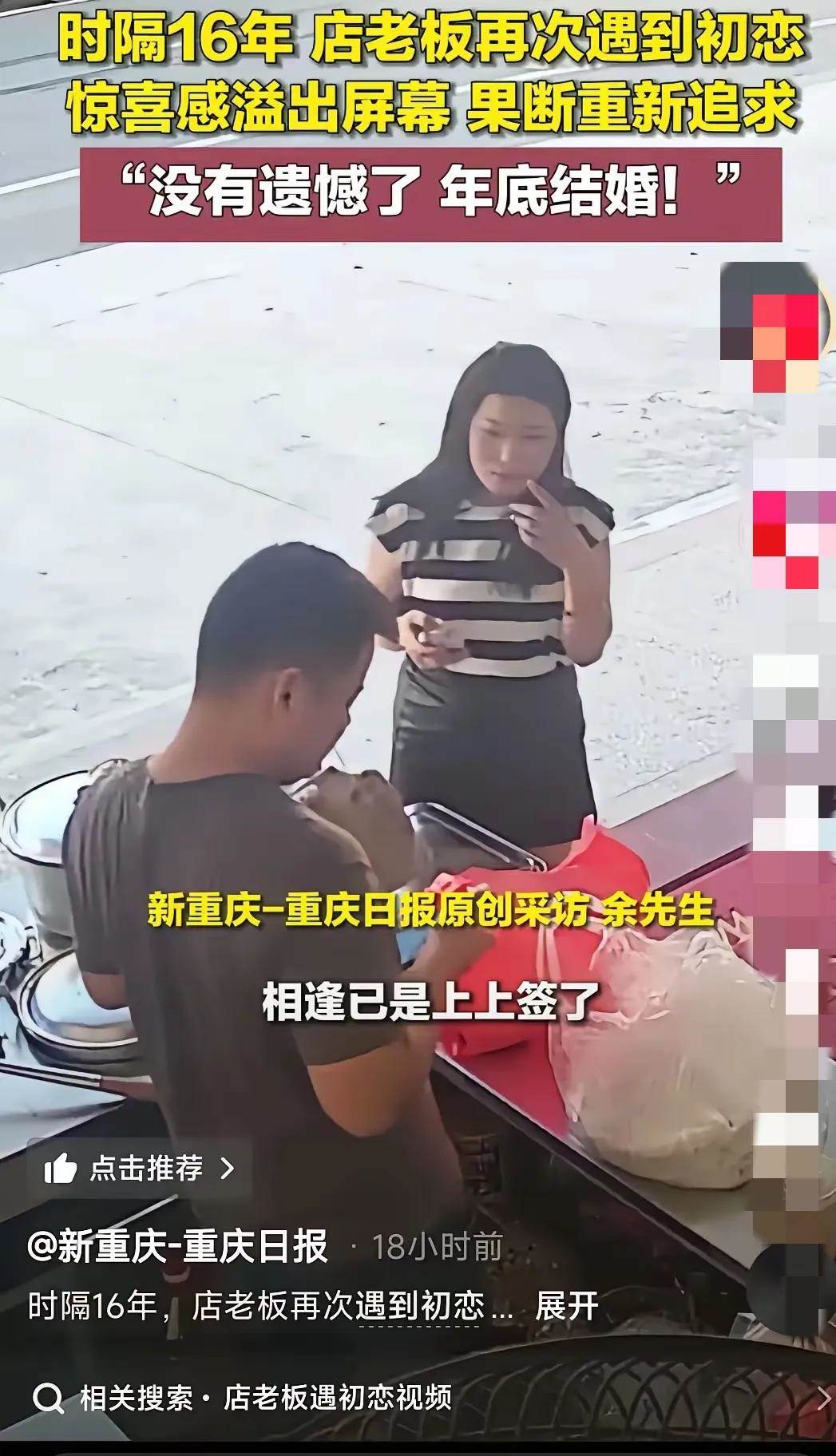 重逢愛情」這種現象也越來越多。不過像余先生這樣,16年后偶然碰到初戀還迅速訂婚的,確實不多見。大部分人都是通過社交媒體重新聯系上,而不是像這樣偶然面對面相遇。