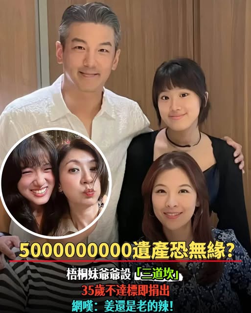 近日,已故航運業富豪孫志浩的父親、梧桐妹的爺爺的遺產分配細節意外曝光,引發了廣泛討論。原來,爺爺為寶貝孫女梧桐妹設下了極為嚴苛的繼承條件:她必須年滿28歲才能獲得30%的遺產,且必須完成大學學業,婚姻也需通過家族審核。若在35歲前仍未達到這些要求,這筆高達50億的巨額遺產將全部捐贈給兒童福利機構。