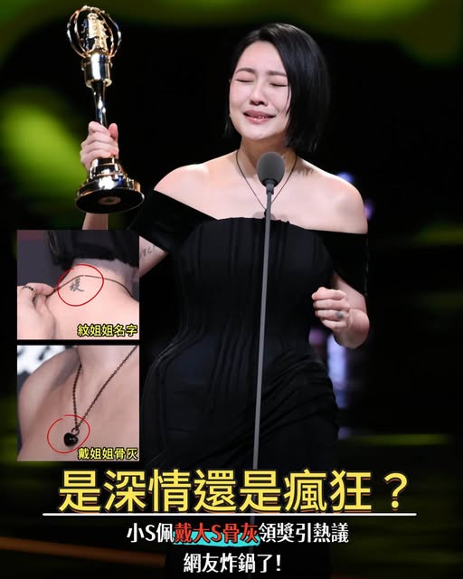 最為震撼的細節,莫過于她頸間那條別致的項鏈。據悉,這條項鏈由她的姐夫、藝術傢俱俊曄親自設計。項鏈的吊墜并非普通裝飾,而是一個微小的容器,里面安放著一小部分大S的骨灰。小S在后台動情地表示:「這是姐姐的一部分,我想她的時候就戴著。今天這個重要的日子,我希望她能陪在我身邊,親眼看到我拿獎。」這一舉動,將一件冰冷的首飾化為有溫度的情感紐帶,實現了生死相隔的陪伴。