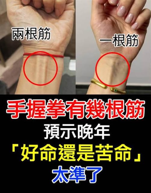 【本報訊】「握拳就能看晚年命運?」近期網路瘋傳:只要手握拳,數一數手背浮出的「筋(靜脈)」數量,就能秒看「晚年是富是苦」!這套「握拳筋相法」被稱為「伯溫筋相」,相傳由明代劉伯溫所傳,只用筋數0、1、2、3,就能斷出老年財庫、健康、人緣。現在就手握拳,30秒看懂自己的老年命!