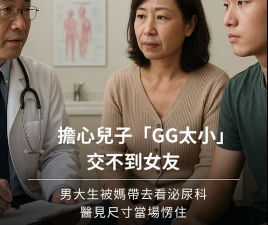 一名男大生最近被媽媽帶到泌尿科就診,原因竟是擔心兒子「發育不良」,怕他因此交不到女朋友。沒想到泌尿科醫師顧芳瑜替他檢查時,看到尺寸直接嚇一跳,貼文曝光後引發熱議。