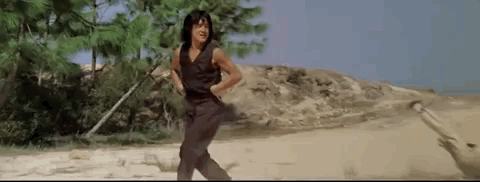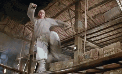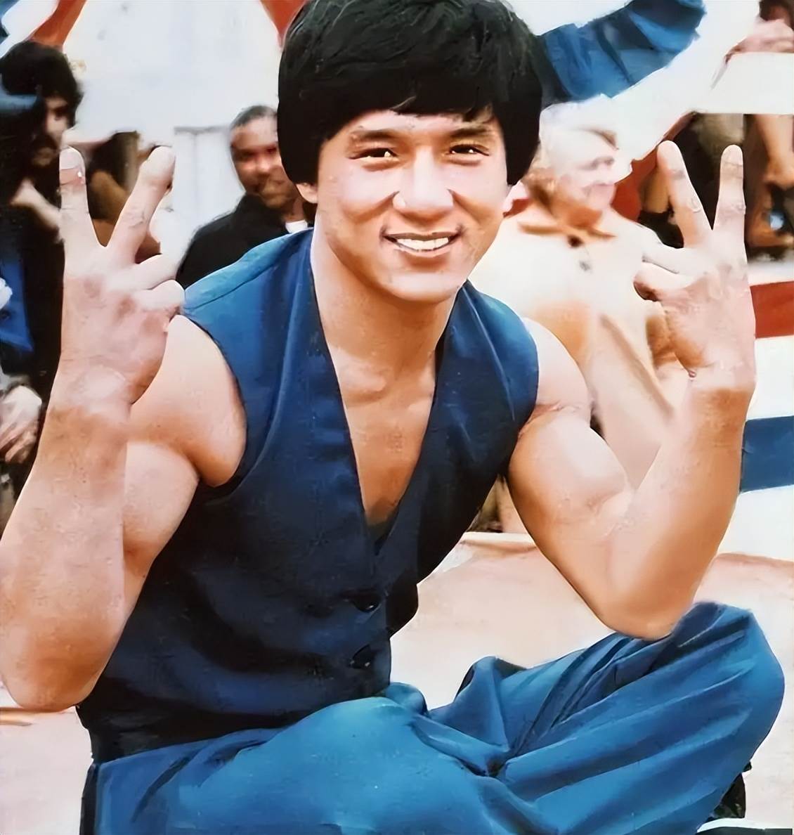 1978年《醉拳》裡,赤膊練功的24歲成龍腹肌緊實。