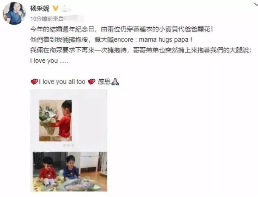 在她與老公已經結婚6周年紀念日上,她透露老公趁著結婚周年紀念日,叫一對雙胞胎兒子代自己送花給她,令她十分感動。