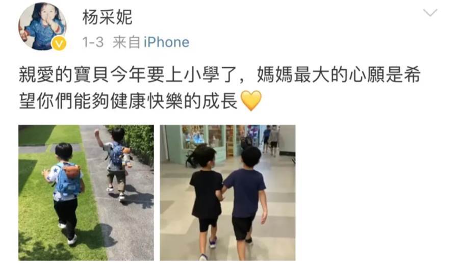 結婚后,43歲的楊采妮冒著高齡產婦的危險,生下了一對雙胞胎Ignatius、Aloysius。