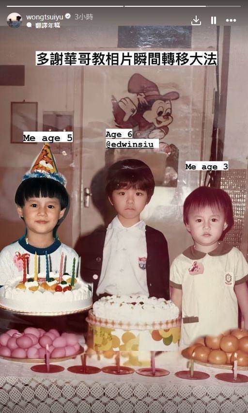 現時蕭正楠又接了另一部劇,當時是他47歲生日,也要繼續趕工,黃翠如則乖乖留在家中等候,并準備好蛋糕及禮物等蕭正楠回家簡單慶祝。 黃翠如更曬出兩人一同切蛋糕的童年照,讓網民驚訝原來兩人竟從小就認識?