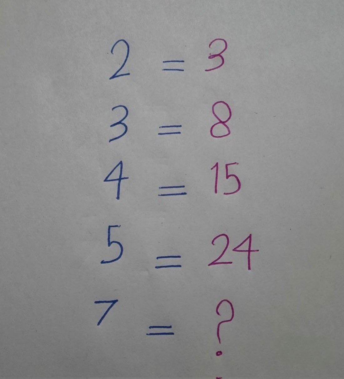 近日,一道看似簡單的數學序列題在各大社交平台與通訊群組瘋傳,題目僅有五個等式:「2=3, 3=8, 4=15, 5=24, 7=?」。出題者以「一道簡單的題難倒了千萬人你會嗎?」為標籤,成功吸引無數網友投身解題,卻也意外引發了兩極化的爭論與思考。