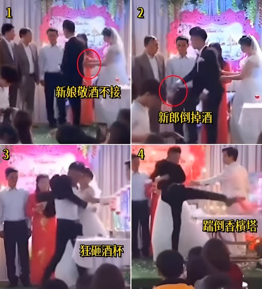 事情發生在婚禮的敬酒環節。新娘手捧酒杯,微微彎腰,恭敬地向新郎的父母敬酒,本該是一個象征尊重與團圓的時刻。