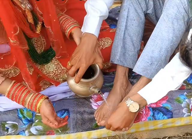 據說這也是當地的習俗,要求新婚妻子當天喝丈夫洗腳水,只有喝了洗腳水,神才會祝福這段婚姻。