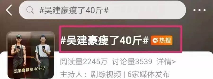 前段時間,吳建豪還曾因一張他看起來瘦到脫相的照片,而衝上了熱搜。