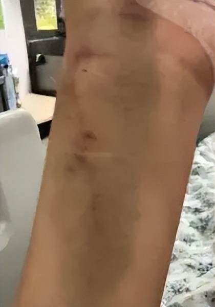 手部淤青嚴重,一看就是吃了不少的苦頭。