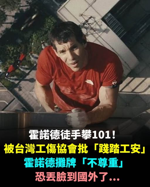 美國極限攀巖好手霍諾德(Alex Honnold)昨(25)日徒手攀爬台北101,僅花91分鐘登頂,透過Netflix全球直播,讓全世界看見台灣。不過,工傷協會持不同看法,批評「這不是表演,這是把人命當成宣傳素材」,聲明貼文曝光後,遭網友灌爆。