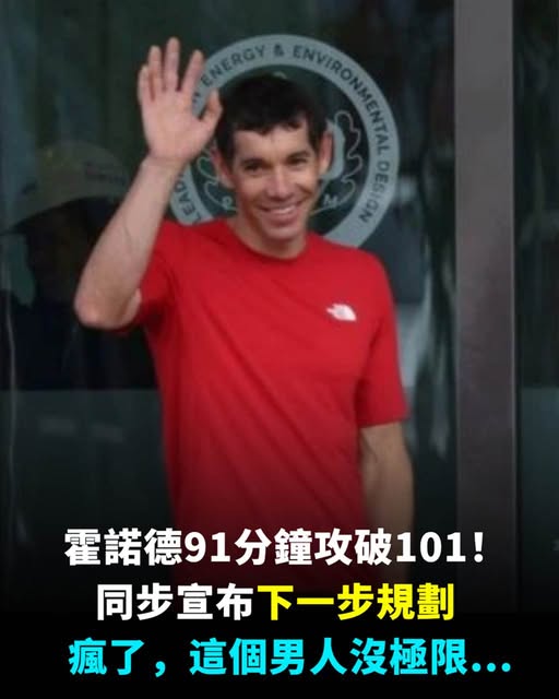 40歲美國極限攀巖家艾力克斯.霍諾德(Alex Honnold)今(25日)成功完成徒手攀爬台北101挑戰,僅花91分鐘就順利登頂。事後他在記者會上透露,一開始雖然緊張,但隨著高度增加,心情逐漸放鬆。被問及下一步計畫,霍諾德笑說會花時間休息,享受家庭時光,同時保持尋找新目標的熱情,但對于像台北101這類攀爬活動不會太執著,需考量天時地利人和。