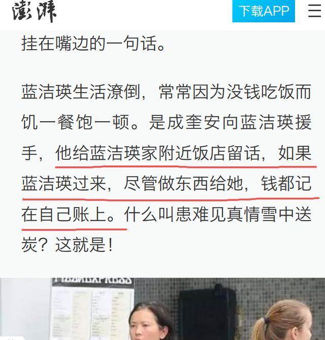 藍潔瑛晚年生活窮困時,成奎安主動伸出援手,特意叮囑她家附近的飯店,只要看到藍潔瑛來,儘管做吃的,所有費用都記在他頭上。