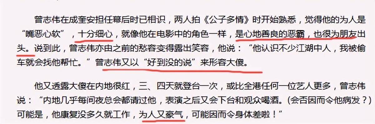 好友曾志偉就曾評價他,面噁心善,心思細,為人豪氣,還總為朋友出頭,人品好得沒話說。