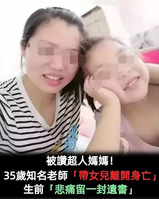 根據《每日頭條》報導,一位35歲的女老師,帶著女兒離開人世的新聞震驚社會,雖然人們很常把老師冠上神聖的印象,是學生的明燈,但是我們忽略了,她雖然是一位老師,但也是一位普通的媽媽,她也有家庭煩惱,可最後這一位老師,還是不堪負重離開人世。