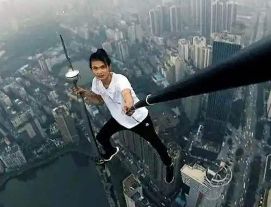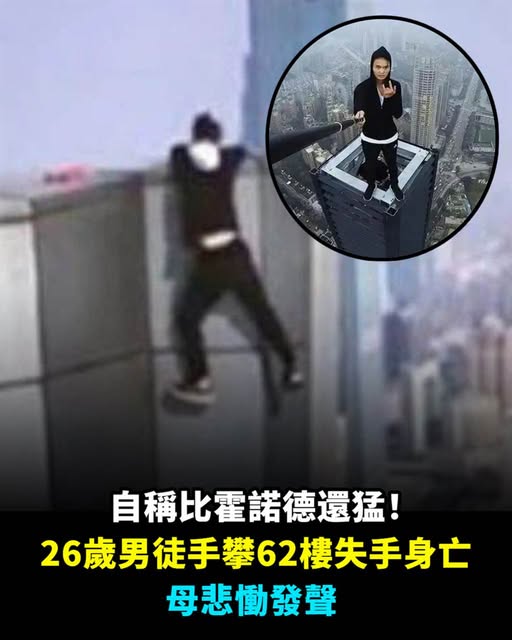 中國極限運動玩家吳永寧,自稱「高空極限運動第一人」,這一名號聽起來霍諾德還猛,因拍攝一系列大樓頂端徒手挑戰影片而爆紅。他常在高樓外做引體向上、單手攀牆、模仿孫悟空張望等高難度動作,吸引百萬粉絲,但過程全無任何防護措施。