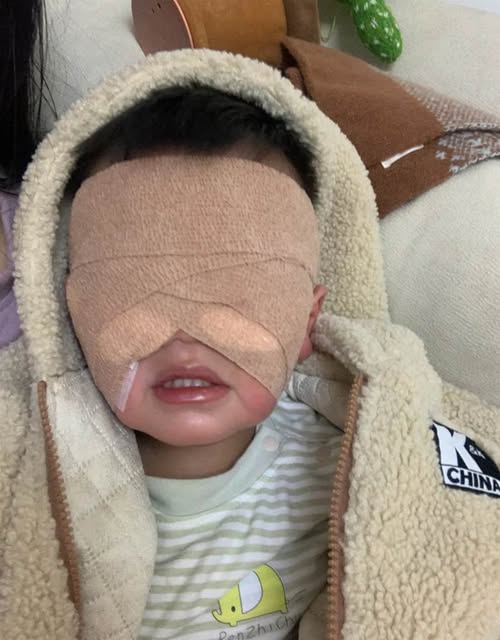 緩過神來的父母趕緊用乾淨毛巾輕輕捂住孩子的眼睛,趕到附近醫院。