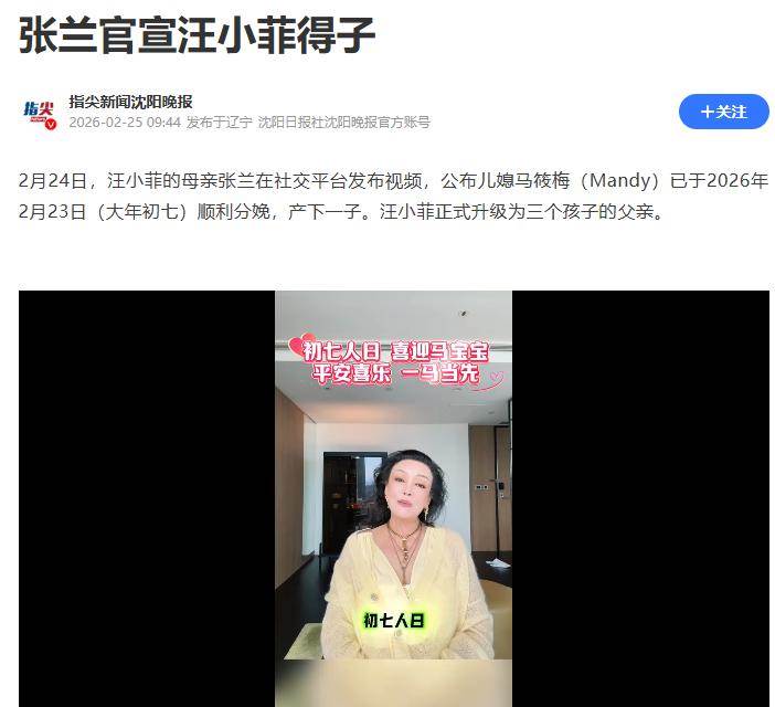 指尖新聞瀋陽晚報:張蘭官宣汪小菲得子