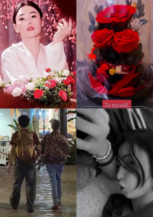 她給自己送最美的祝福,同時曬出給自己準備的玫瑰花。