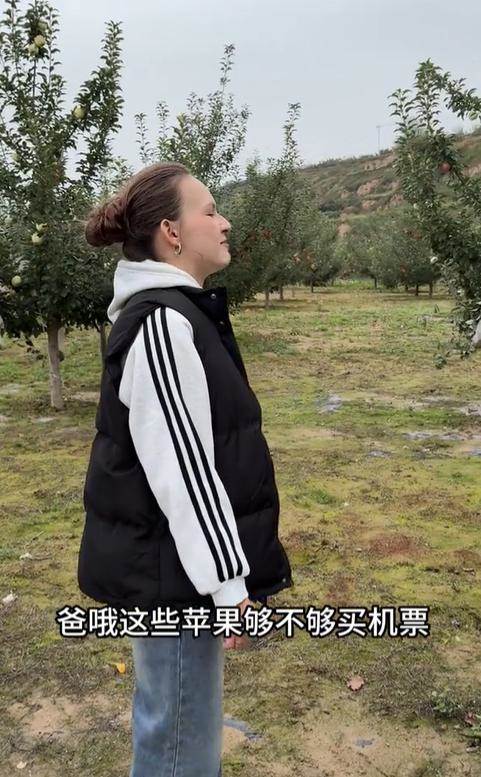原來,瑪麗娜來到中國已經一年了,這一年來,她一直生活在甘肅農村,她也十分想念俄羅斯的家人。所以她希望家裡的蘋果賣了錢後,能為自己和丈夫購買兩張飛機票,那樣,她就可以回到俄羅斯探親了。