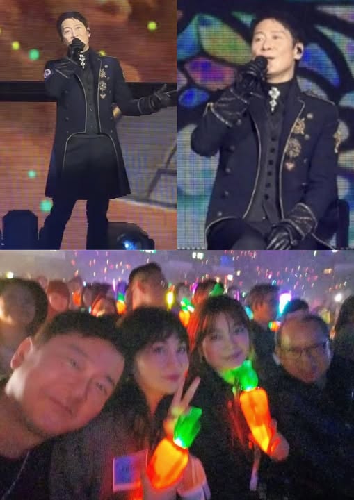 四人坐在演唱會的第一排,林寶賢與邱李茂琪人手一個胡蘿蔔熒光棒,由於光線太暗,所以顯得模糊。黎明出道40周年紀念演唱會開鑼,林建岳攜女友捧場,張學友送花籃