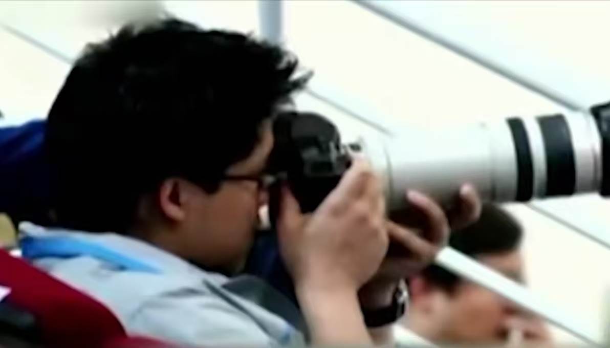 他總是默默的坐在觀眾席裡,抱著相機對著場上拍個不停。